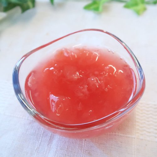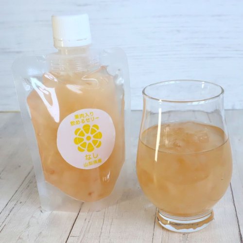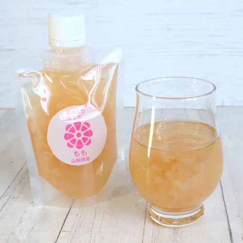 山梨県産のシャインマスカットを使用したクラッシュゼリーです。シャインマスカットの果肉をふんだんに使用しています。冷たくしてご賞味ください。
