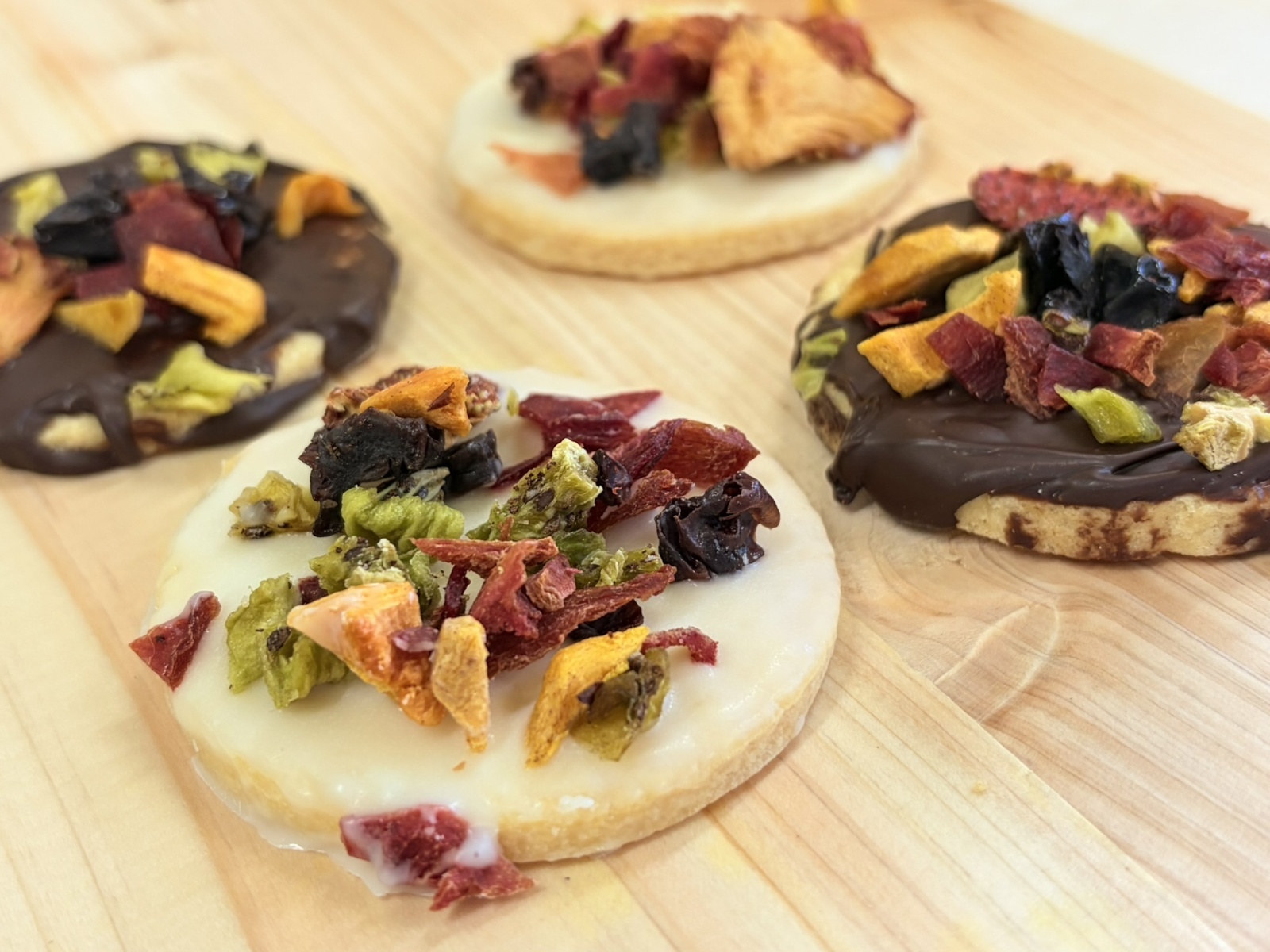 山梨県産の巨峰、すもも、キウイ、柿、いちごとチョコレートを合わせたフランス発祥のお菓子です。ホワイトチョコレートとビターチョコレートの2種類です。ギフト用のホワイトチョコレート4個とビターチョコレート4個入りの8個セットもありますのでぜひご賞味ください。