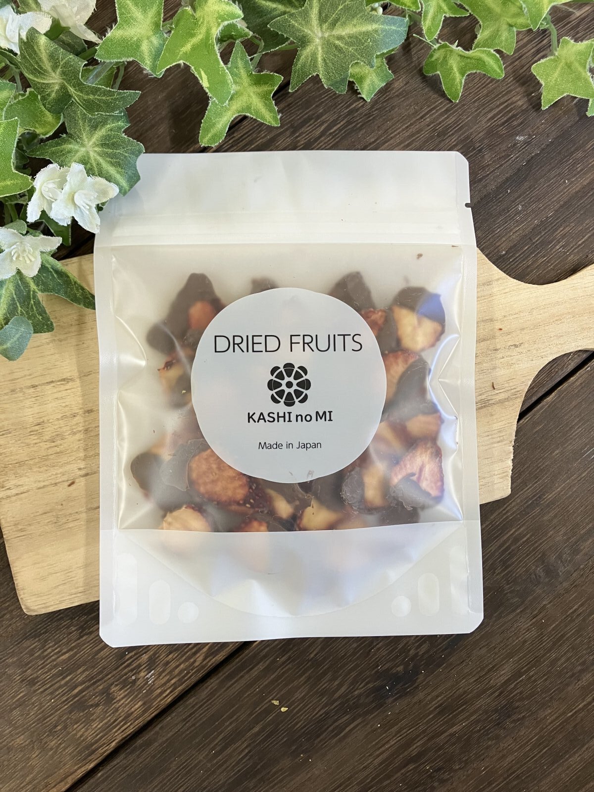 山梨県産のいちごのドライフルーツにチョコレートをかけた商品です。